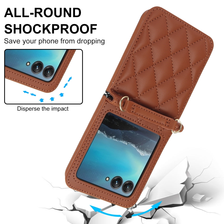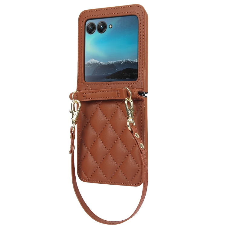 Funda para Motorola Razr 40 con Textura Ultra Rómbica y Cordón Largo y Corto (Marrón)