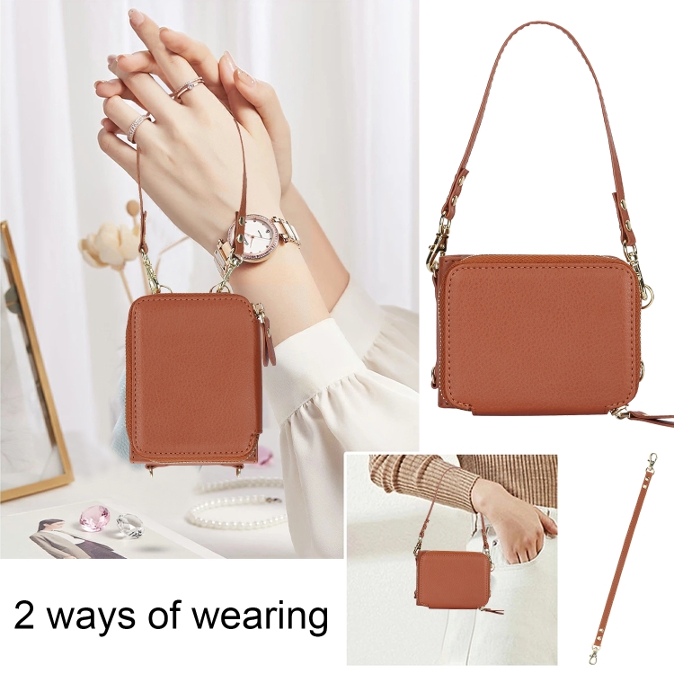 - 1x Funda para Motorola Razr 40 Teléfono Plegable con Ranura para Tarjeta, Cremallera y Cordón (Marrón)