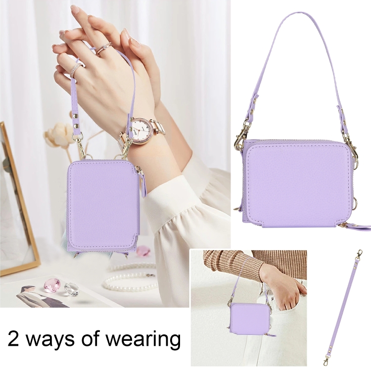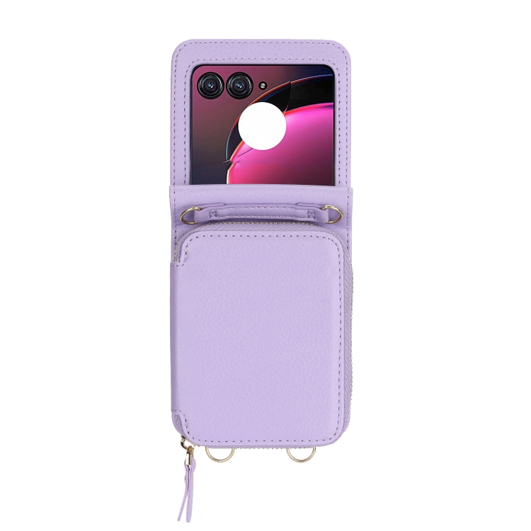 - 1x Funda para Motorola Razr 40 Teléfono Plegable con Ranura para Tarjeta, Cremallera y Cordón (Púrpura)
