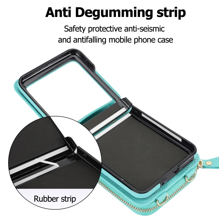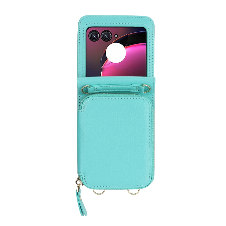 - 1x Funda para Motorola Razr 40 Teléfono Plegable con Ranura para Tarjeta y Cremallera (Verde Menta)