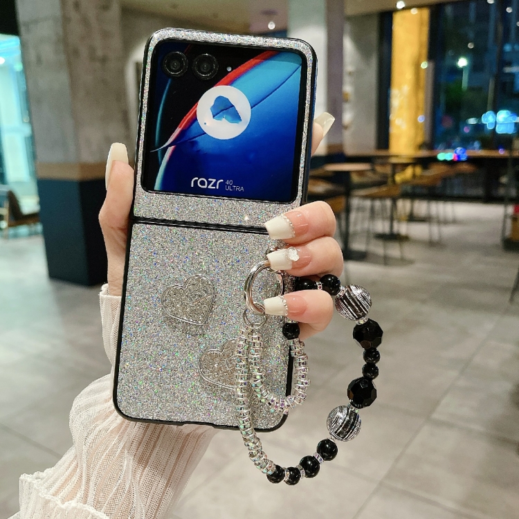Funda Protectora Motorola Razr 40 con Brillo Ultra Degradado y Cadena de Cuentas (Gris)