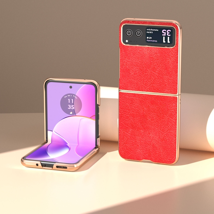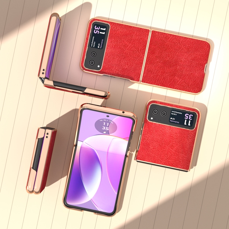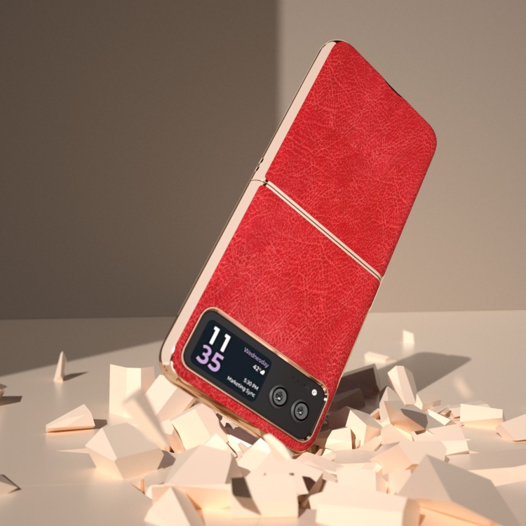 - 1x Funda para Motorola Razr 40 Retro con textura Litchi PU (Rojo)