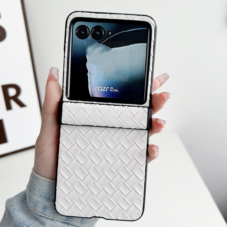 Funda para Motorola Razr 40 Ultra Juego de Tres Piezas PU Plegable con Textura Tejida (Blanco)