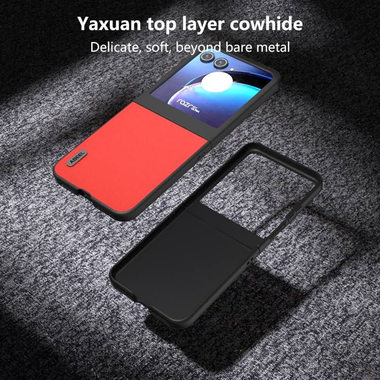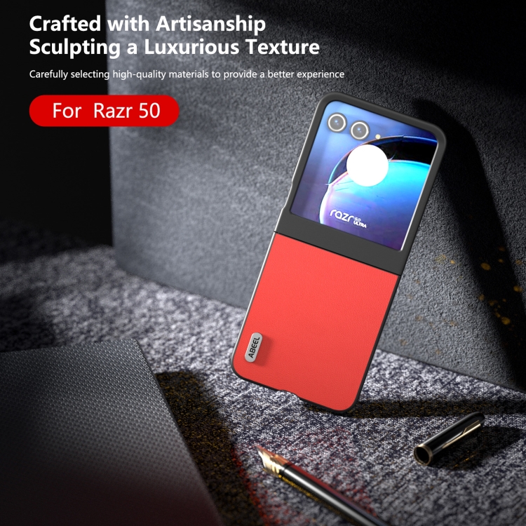 Funda para Motorola Razr 50 Abeel Serie Luolai de Cuero Genuino (Rojo)