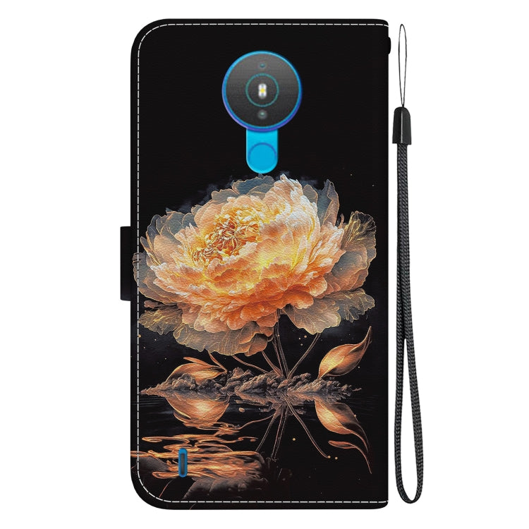 Estuche de Cuero para Nokia 1.4 con Dibujo Coloreado y Textura de Cristal (Peonía Dorada)