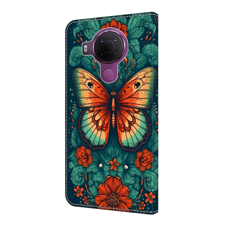 Funda de Cuero para Nokia 3.4/5.4 con Cristales y Diseño Mariposa de Flores