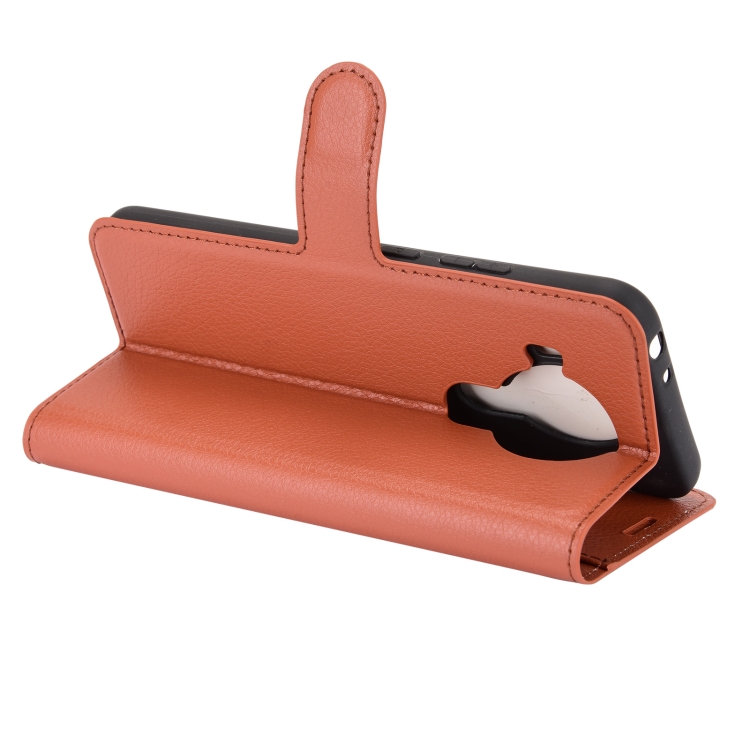 Para Nokia 5.4 Funda protectora con tapa horizontal con textura de litchi con soporte, ranuras para tarjetas y billetera (marrón)
