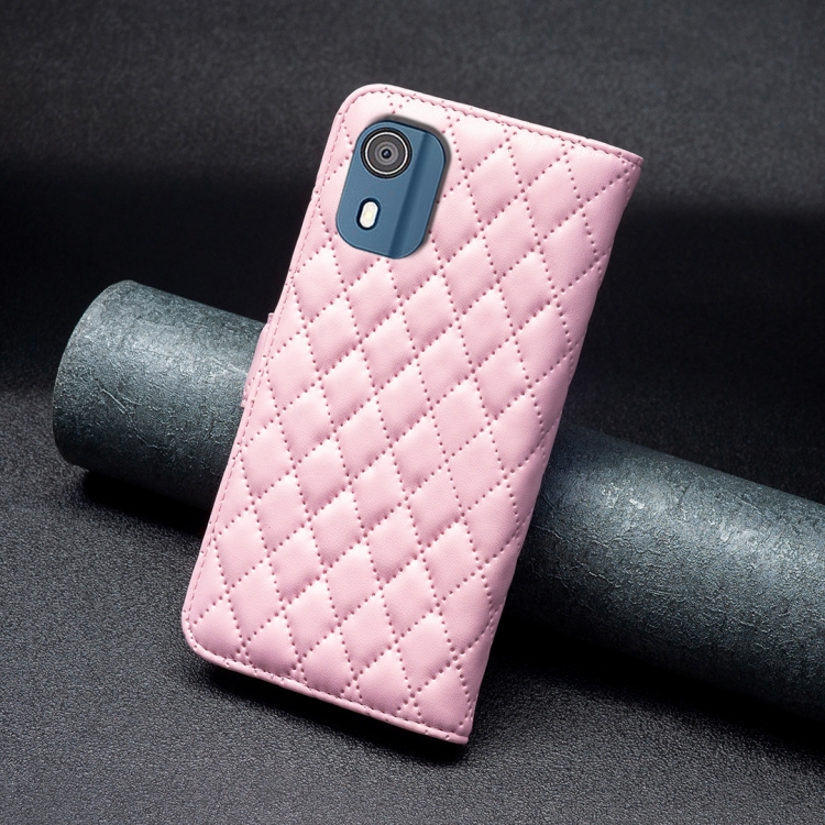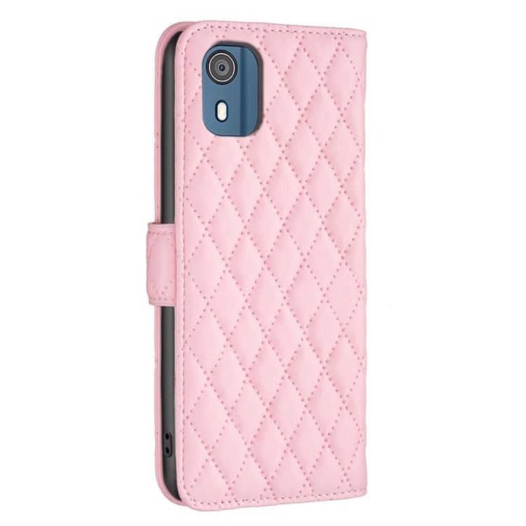 Funda de Cuero para Nokia C02 Diamond Lattice Wallet Flip para Teléfono (Rosa)