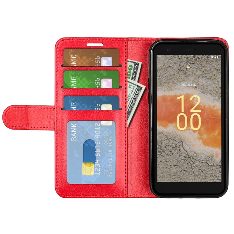 Funda para Nokia C02 R64 de Cuero con Tapa Horizontal y Textura (Rojo)