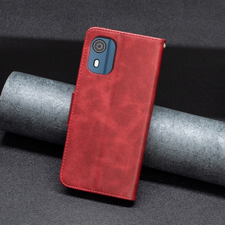 Funda de Cuero para Nokia C02 con Tapa Textura de Piel de Cordero (Rojo)