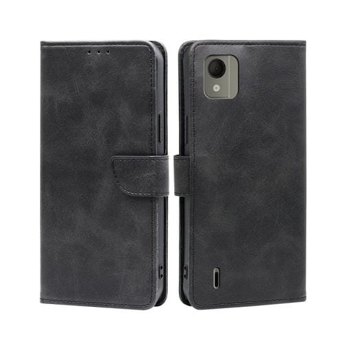 Funda para Nokia C110 4G de Cuero con Tapa y Hebilla Textura de Becerro (Negro)