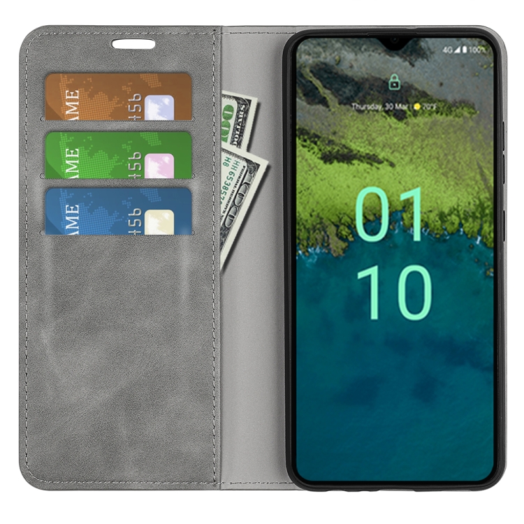 Funda para Nokia C110 Retro-Skin con Succión Magnética de Cuero (Gris)