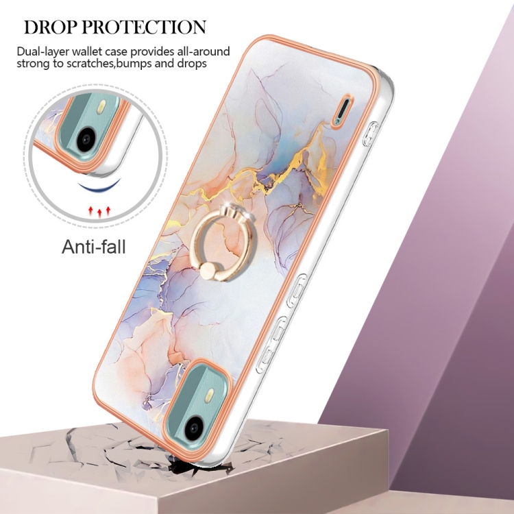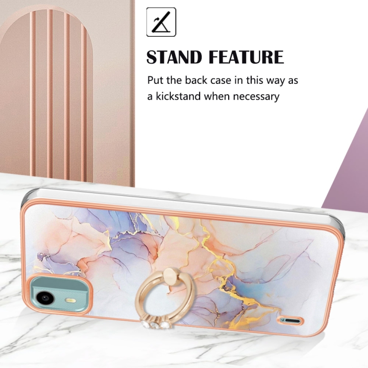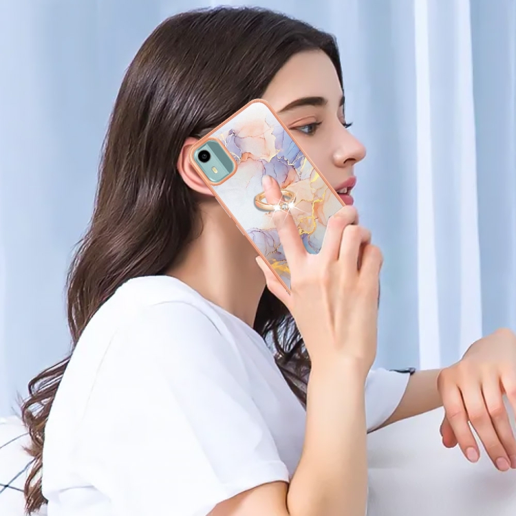 Funda para Nokia C12 TPU con Galvanoplastia y Anillo (Mármol Blanco)
