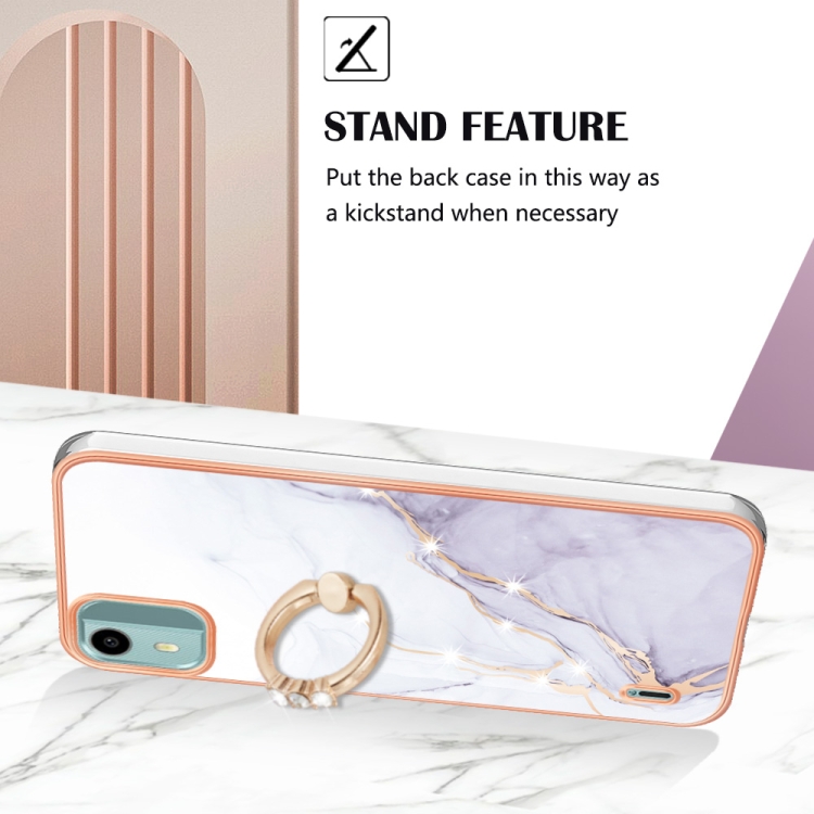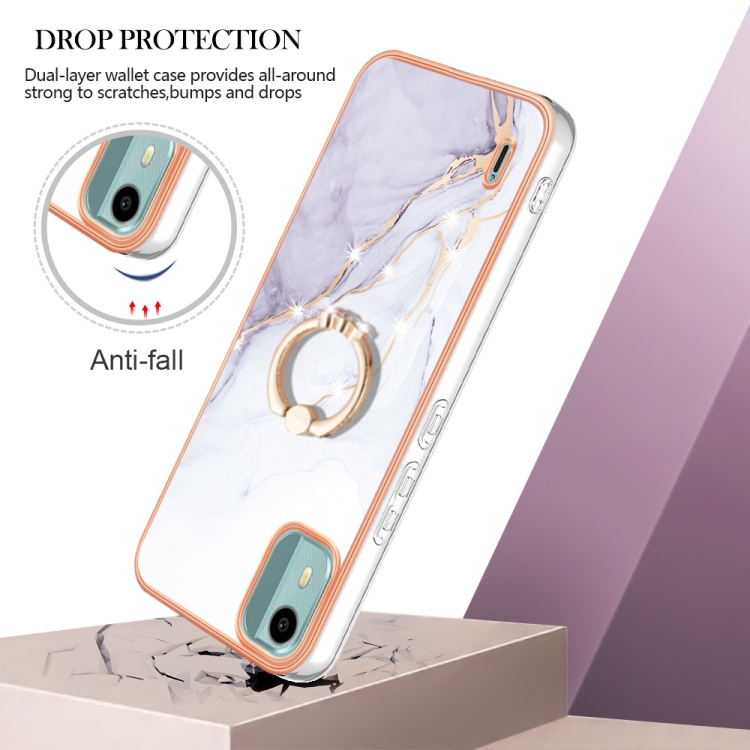 Funda para Nokia C12 Imd TPU Mármol Galvanizado con Soporte para Anillo (Blanco)