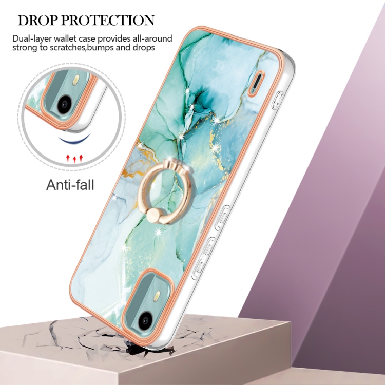 Funda para Nokia C12 TPU Mármol Galvanizado con Soporte para Anillo (Verde)