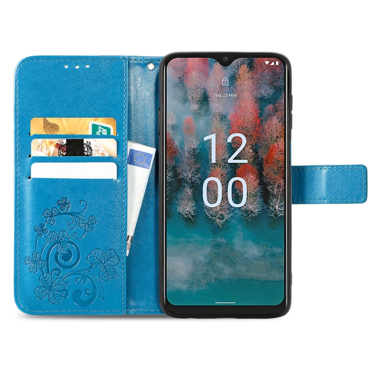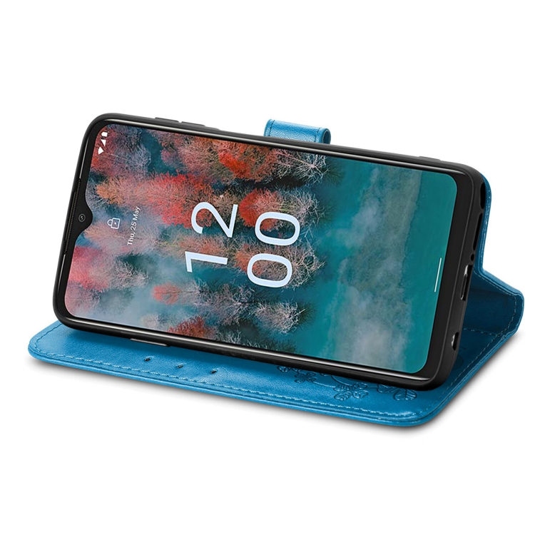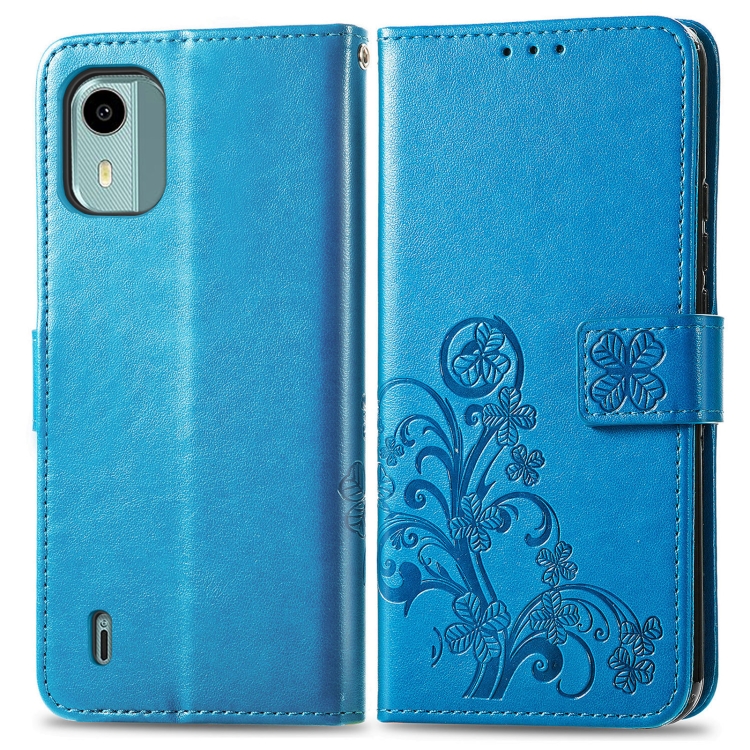 Estuche para Teléfono Nokia C12 Cuero con Hebilla en Relieve y Cierre de Cuatro Hojas (Azul)