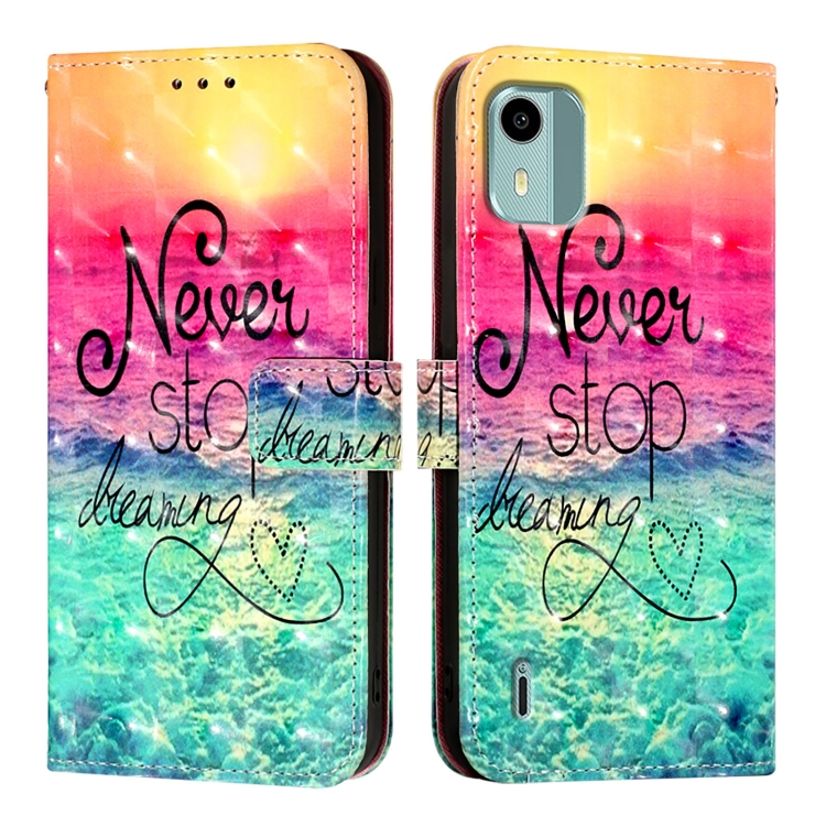 Funda de Cuero para Nokia C12 con Tapa Horizontal y Pintura 3D (Persiguiendo Sueños)