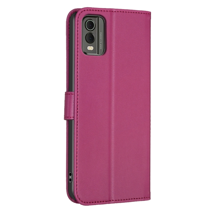 Funda para Teléfono Nokia C12 de Cuero con Relieve de Cuatro Hojas (Rojo Rosa)