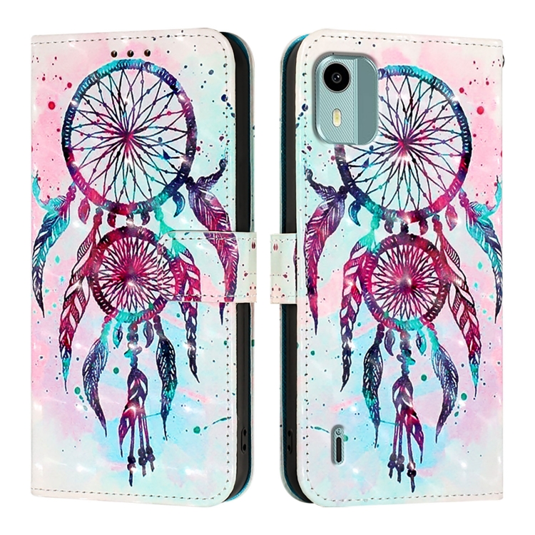 Funda para Nokia C12 de Cuero con Tapa Horizontal y Pintura 3D (Campanas de Viento)