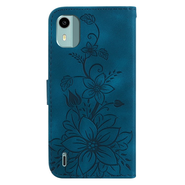 Funda de Cuero En Relieve para Teléfono Nokia C12 Lily (Azul Oscuro)