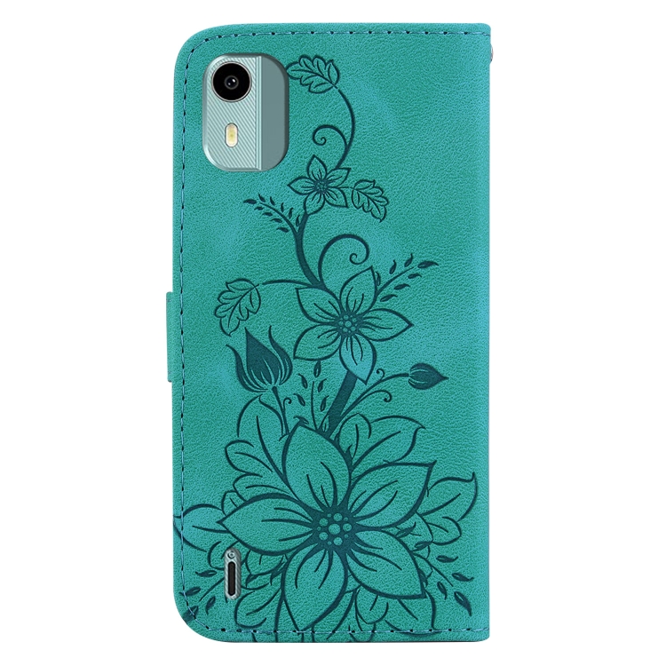 Funda de Cuero en Relieve para Nokia C12 Lily Teléfono (Verde)