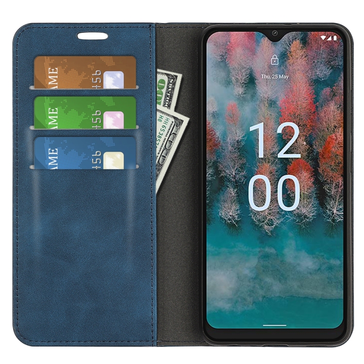Funda para Nokia C12 Retro-Skin con Succión Magnética y Cuero (Azul Oscuro)