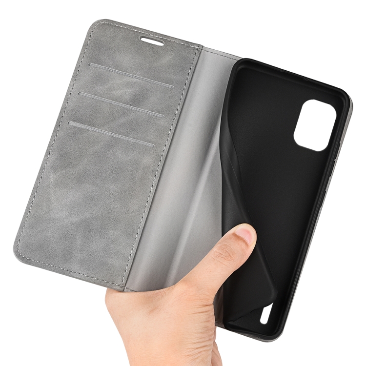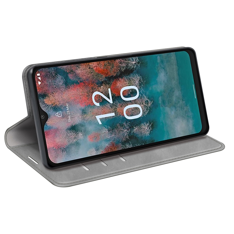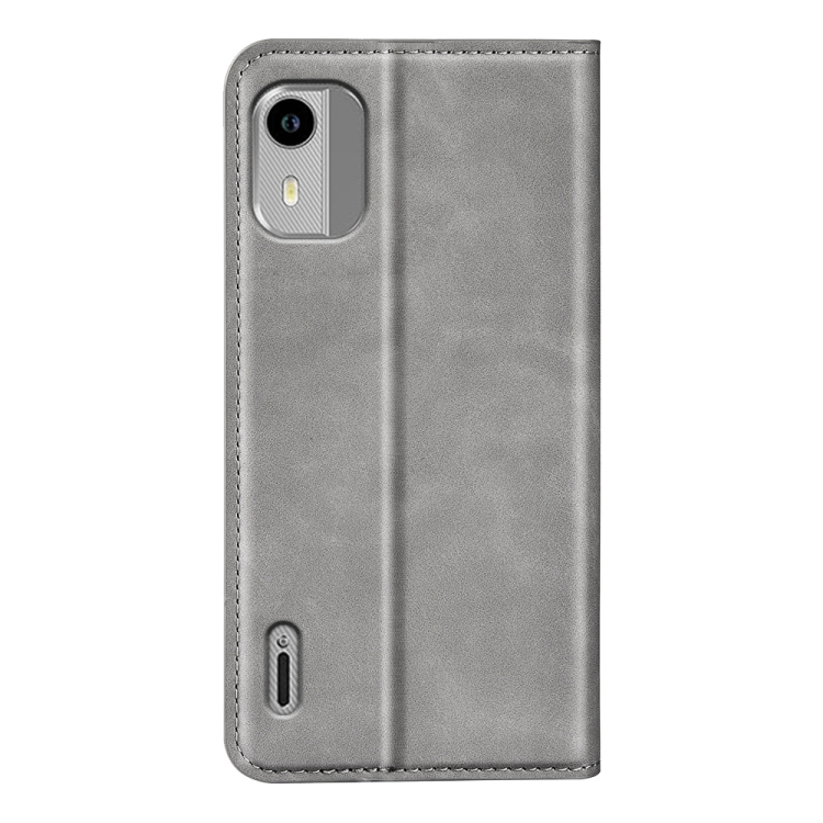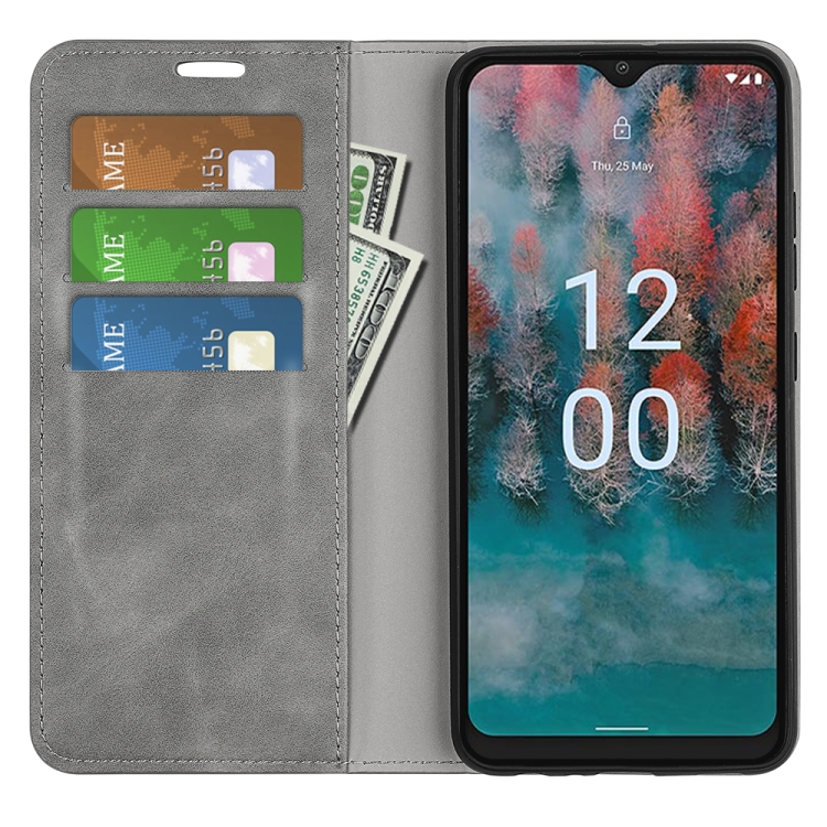 Funda para Nokia C12 Retro-Skin con Succión Magnética y Cuero (Gris)