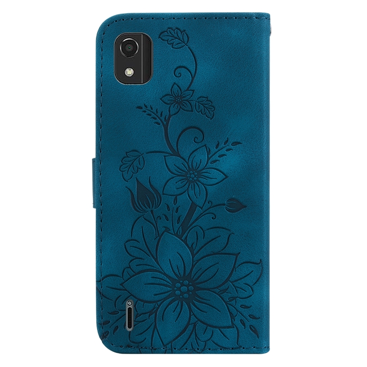 Funda para Nokia C2 2nd Edition de Cuero con Relieve Lily (Azul Oscuro)