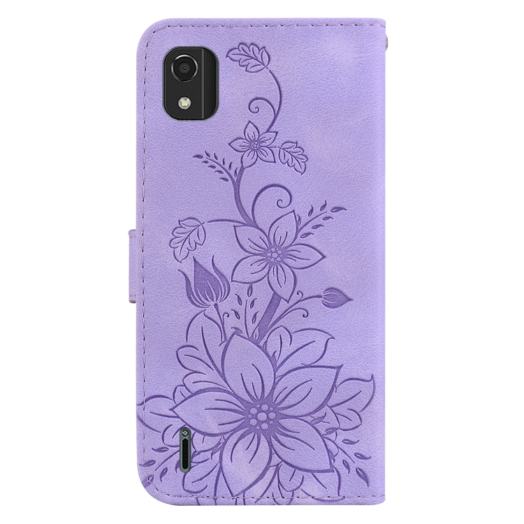 Funda para Nokia C2 2Nd Edition de Cuero con Relieve Lily (Púrpura)