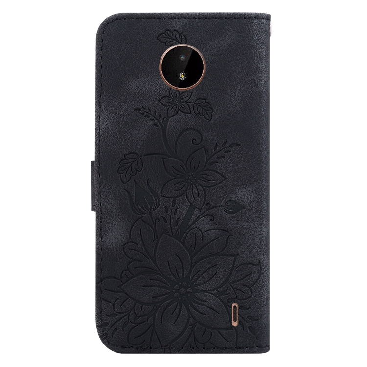 Funda de Cuero en Relieve para Nokia C20 y C10 Lily para Teléfono (Negro)