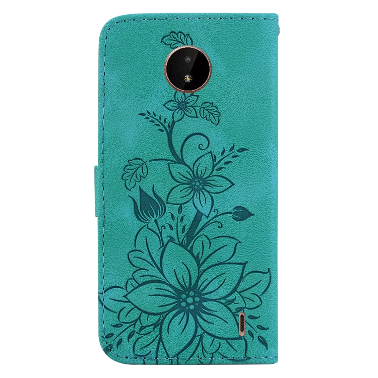 Funda de Cuero para Nokia C20 y C10 Lily con Relieve (Verde)