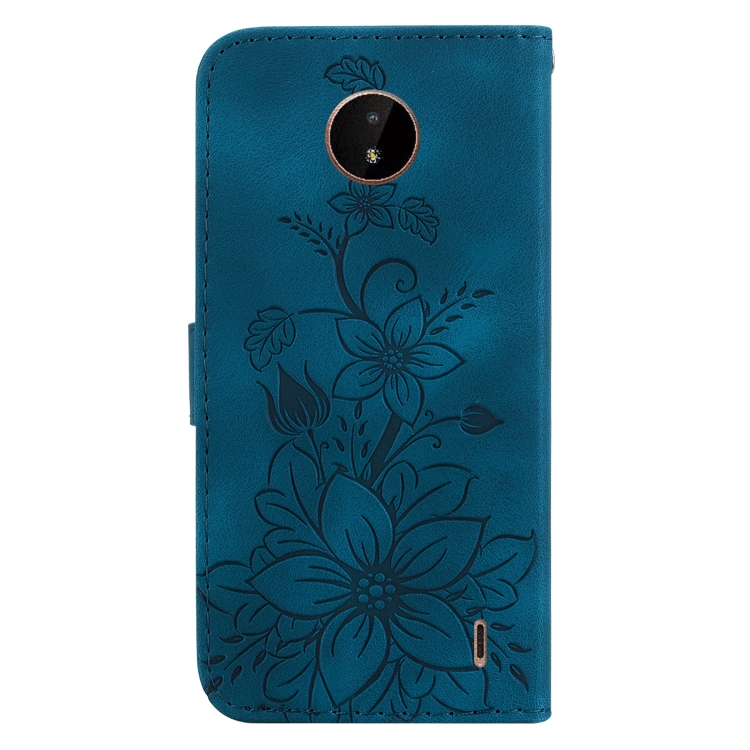 Funda para Nokia C20 y C10 Lily de Cuero en Relieve (Azul Oscuro)