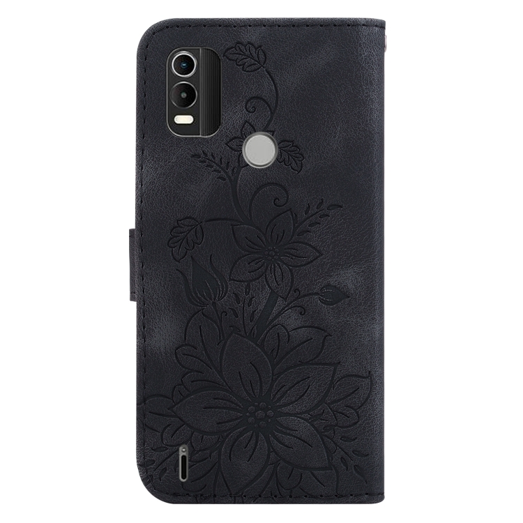 Funda de Cuero para Nokia C21 Plus con Relieve Lily (Negro)