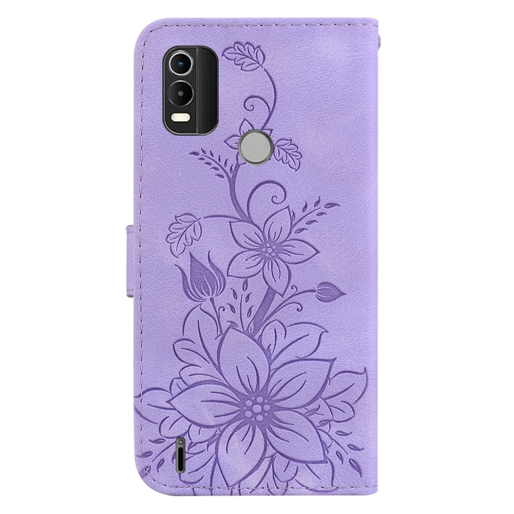 Funda de Cuero con Relieve Lily para Nokia C21 Plus (Púrpura)