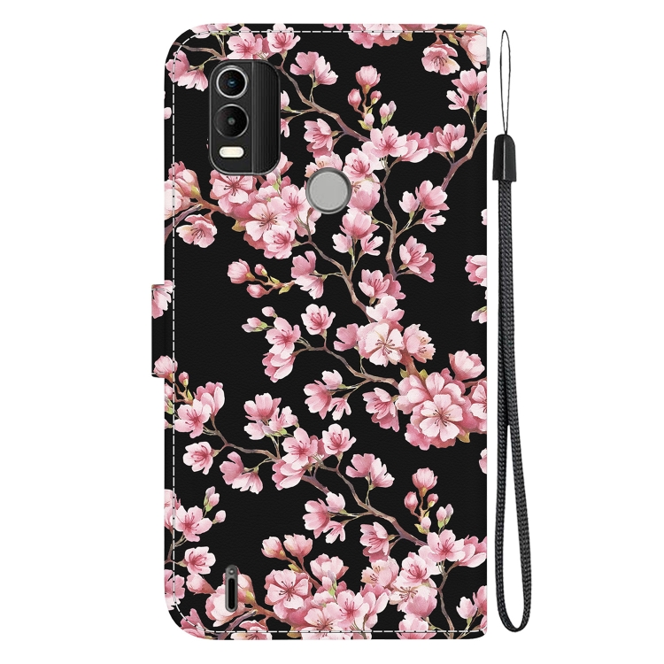 Funda para Nokia C21 Plus de Cuero con Dibujo Coloreado y Textura de Cristal (Flor de Ciruelo)