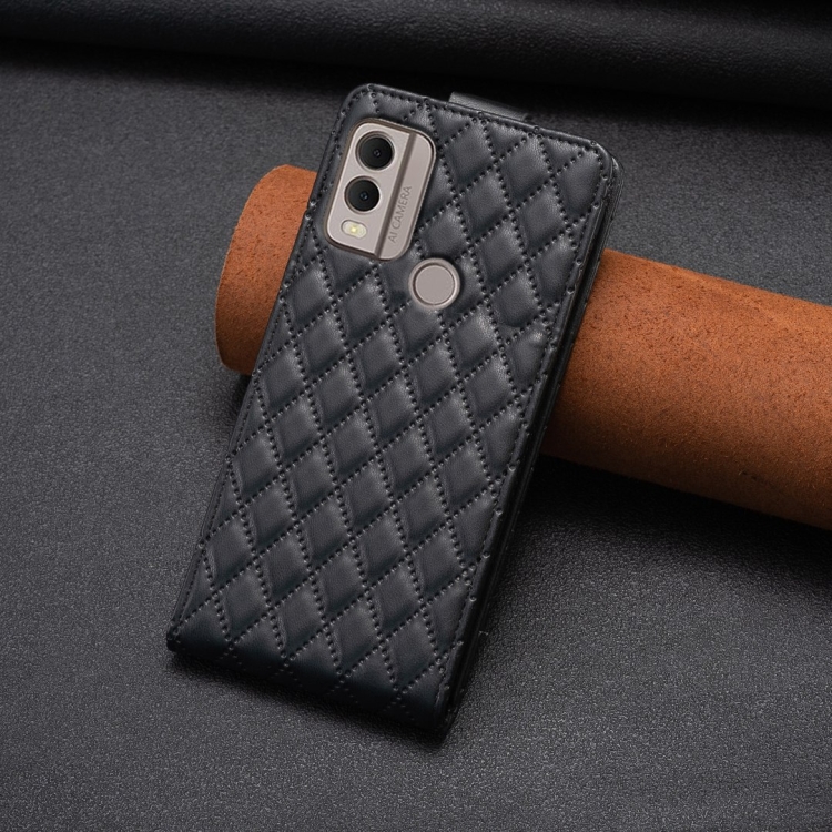 Funda de Cuero con Tapa Vertical para Nokia C22 Diamond Lattice (Negro)