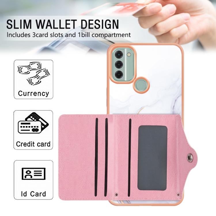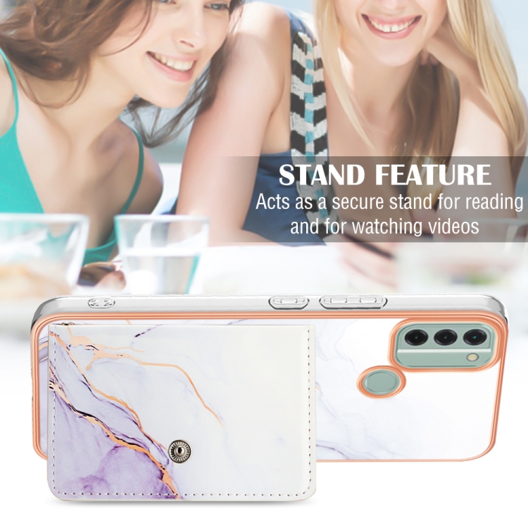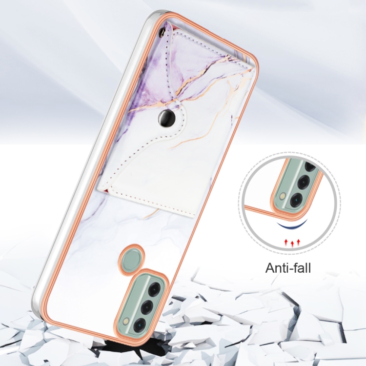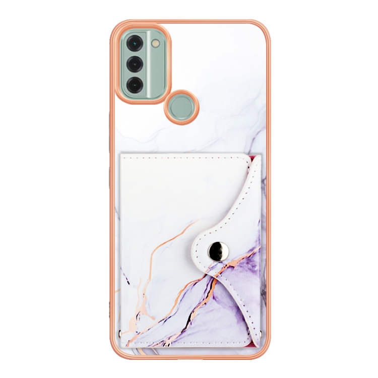 Estuche para Teléfono Nokia C31 con Ranura para Tarjeta IMD Patrón de Mármol (Blanco y Morado)