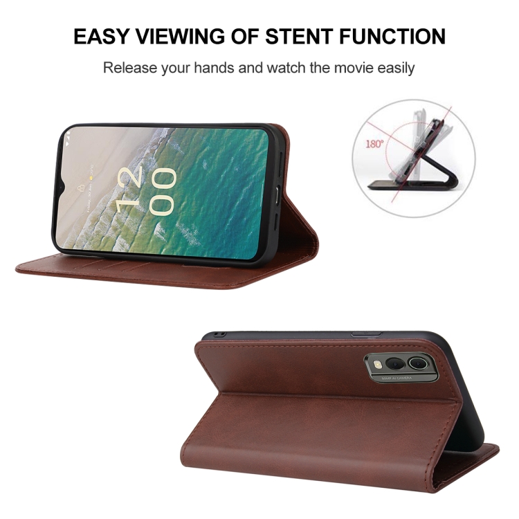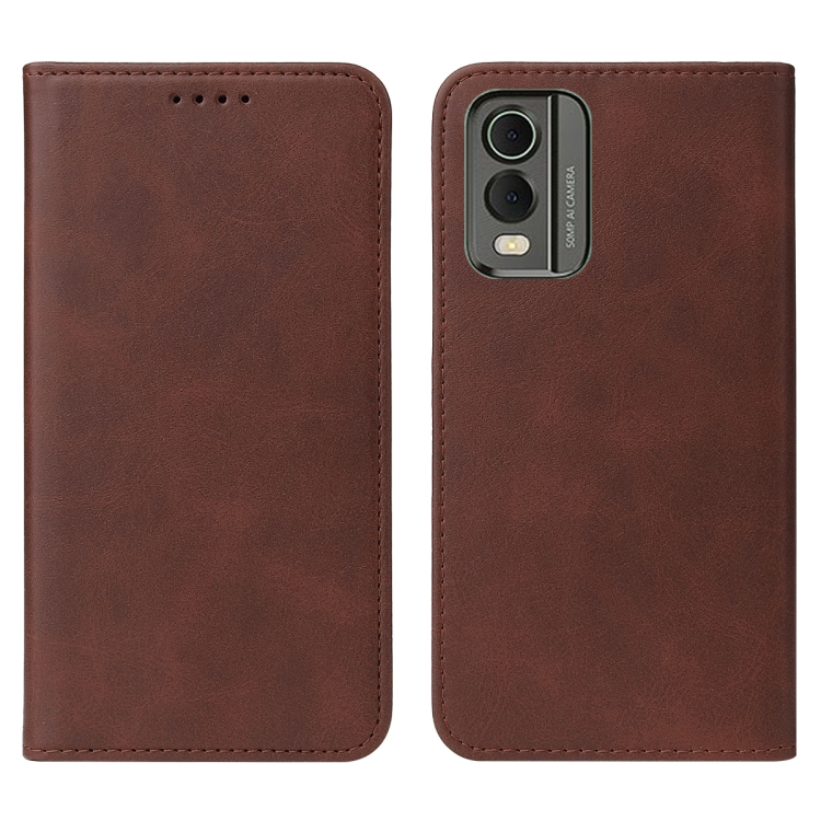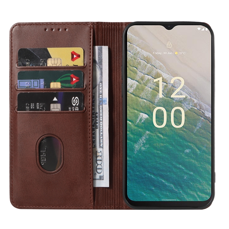 Funda de Cuero para Nokia C32 con Cierre Magnético (Marrón)