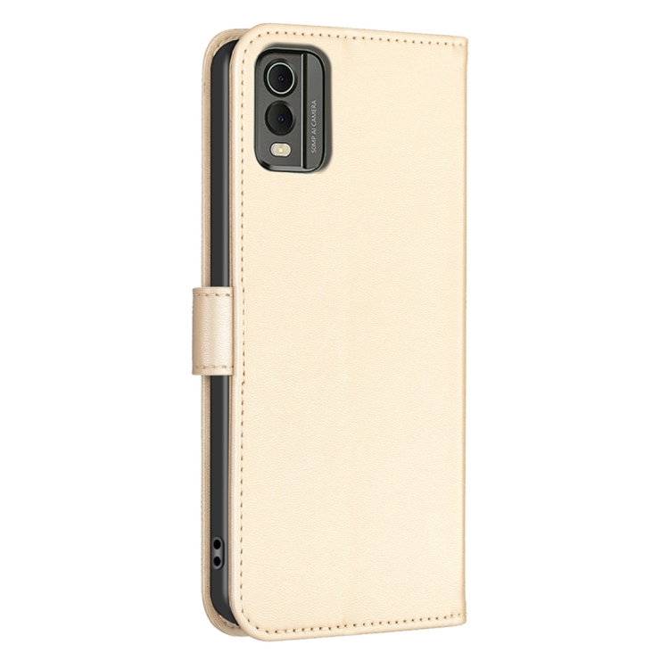Funda de Cuero para Nokia C32 con Relieve de Cuatro Hojas (Dorado)