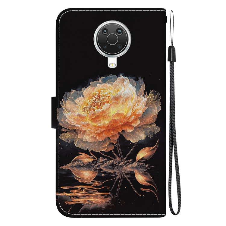 Funda para Nokia G10 / G20 de Cuero con Dibujo Coloreado y Textura de Cristal (Peonía Dorada)