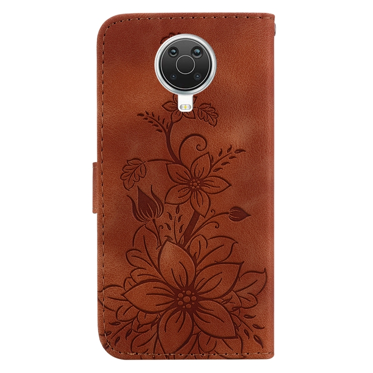 Funda de Cuero En Relieve para Nokia G10 y G20 Lily (Marrón)