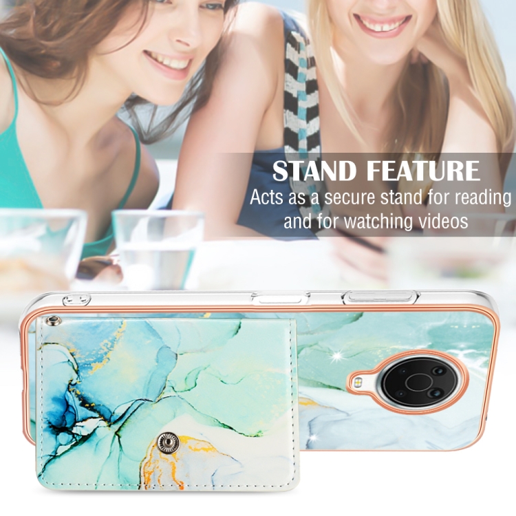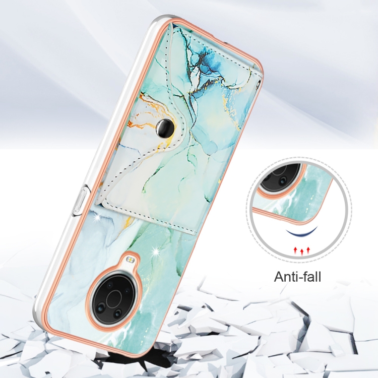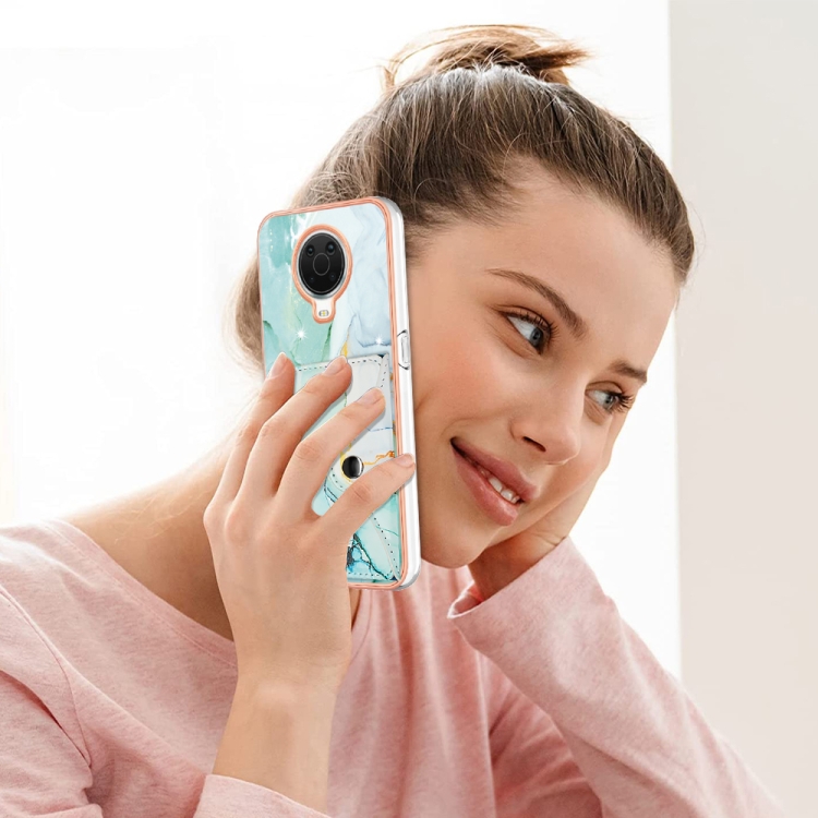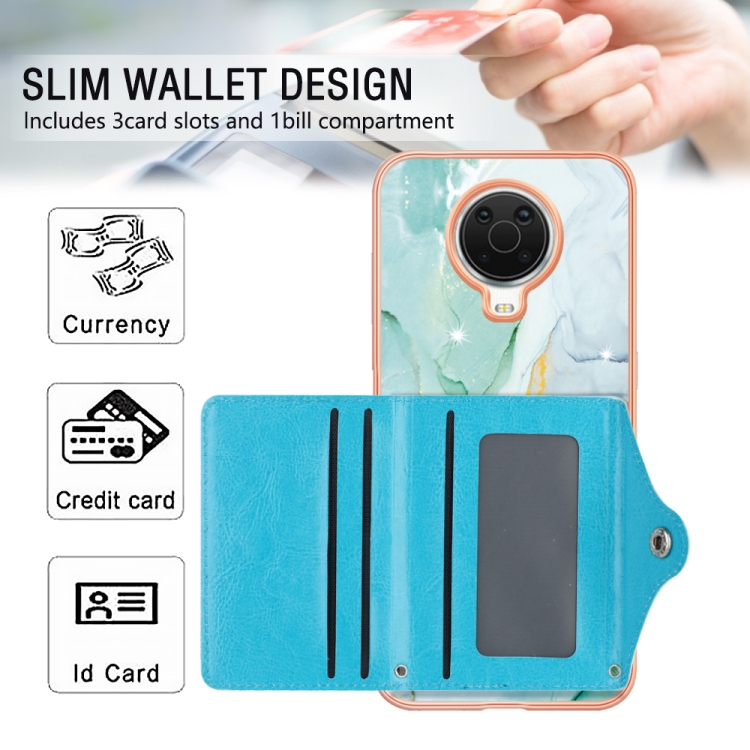 Estuche para Teléfono Nokia G20 / G10 con Ranura para Tarjeta y Patrón de Mármol (Verde)