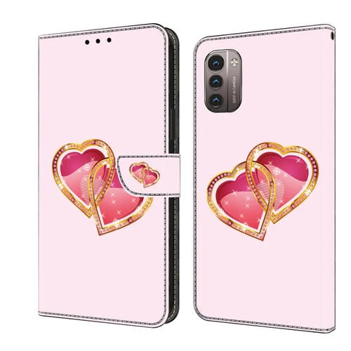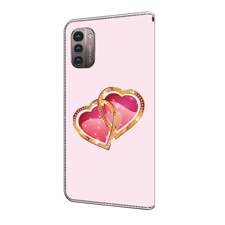 Funda de Cuero para Nokia G21 y G11 con Cristales Pintada (Love Peach)