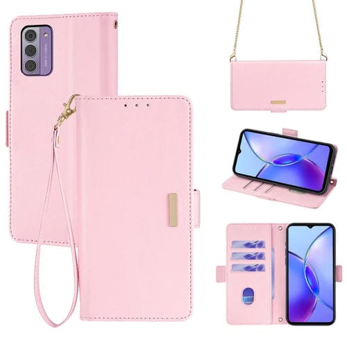 Funda de Cuero para Nokia G42 4G con Cadena Cruzada (Rosa)