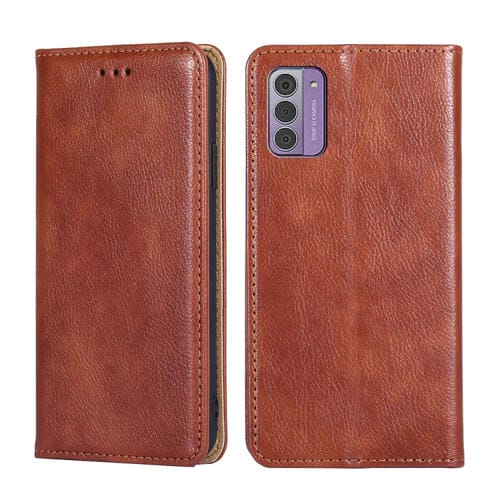Estuche para Nokia G42 5G de Cuero Magnético con Aceite Brillante (Marrón)