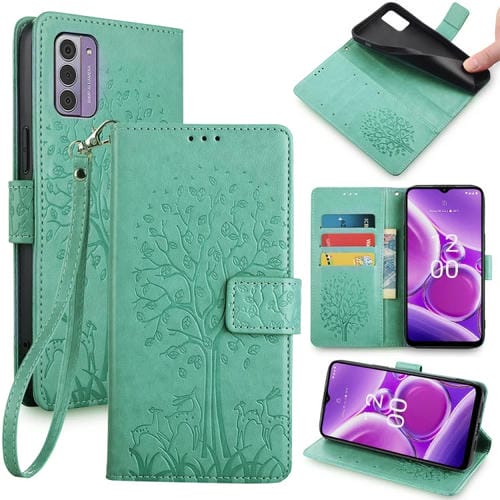 Funda para Nokia G42 5G de Cuero con Relieve de Árbol y Ciervo (Verde)