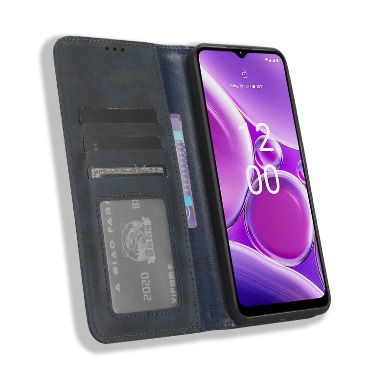 Funda para Nokia G42 5G de Cuero con Textura Retro y Hebilla Magnética (Azul)