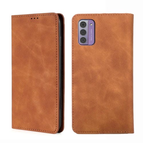 Funda de Cuero Magnética para Nokia G42 5G Skin Feel (Marrón Claro)