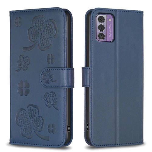 Funda para Teléfono Nokia G42 / G310 de Cuero con Relieve de Cuatro Hojas (Azul)