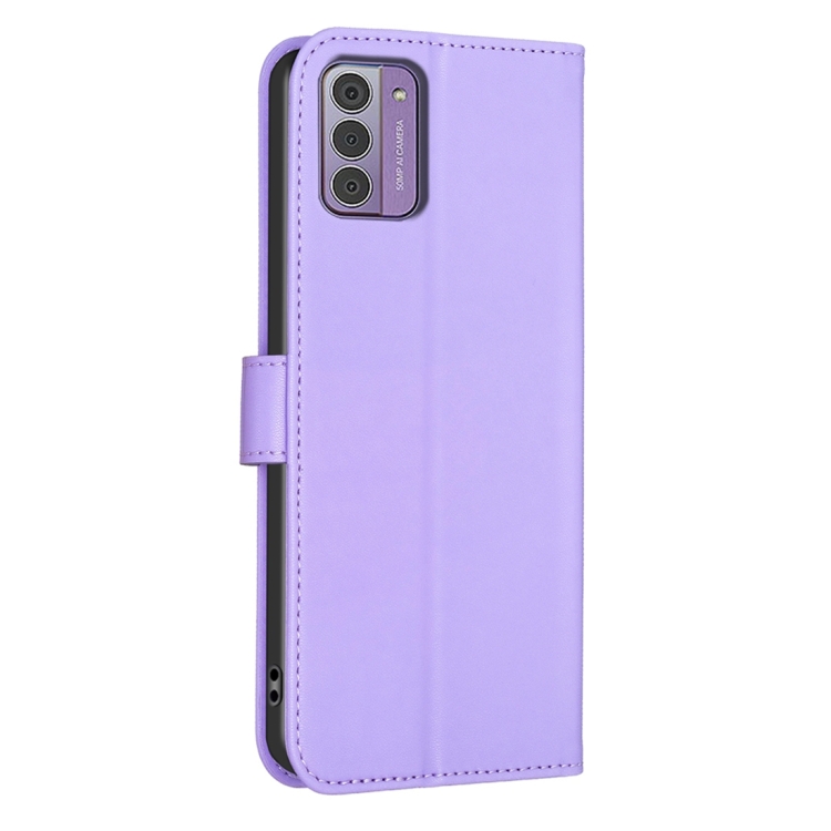 Funda para Nokia G42 / G310 de Cuero con Relieve de Cuatro Hojas (Púrpura)